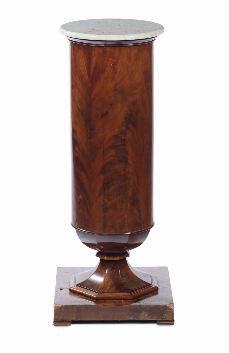 Comodino a colonna lastronato in radica, XIX secolo