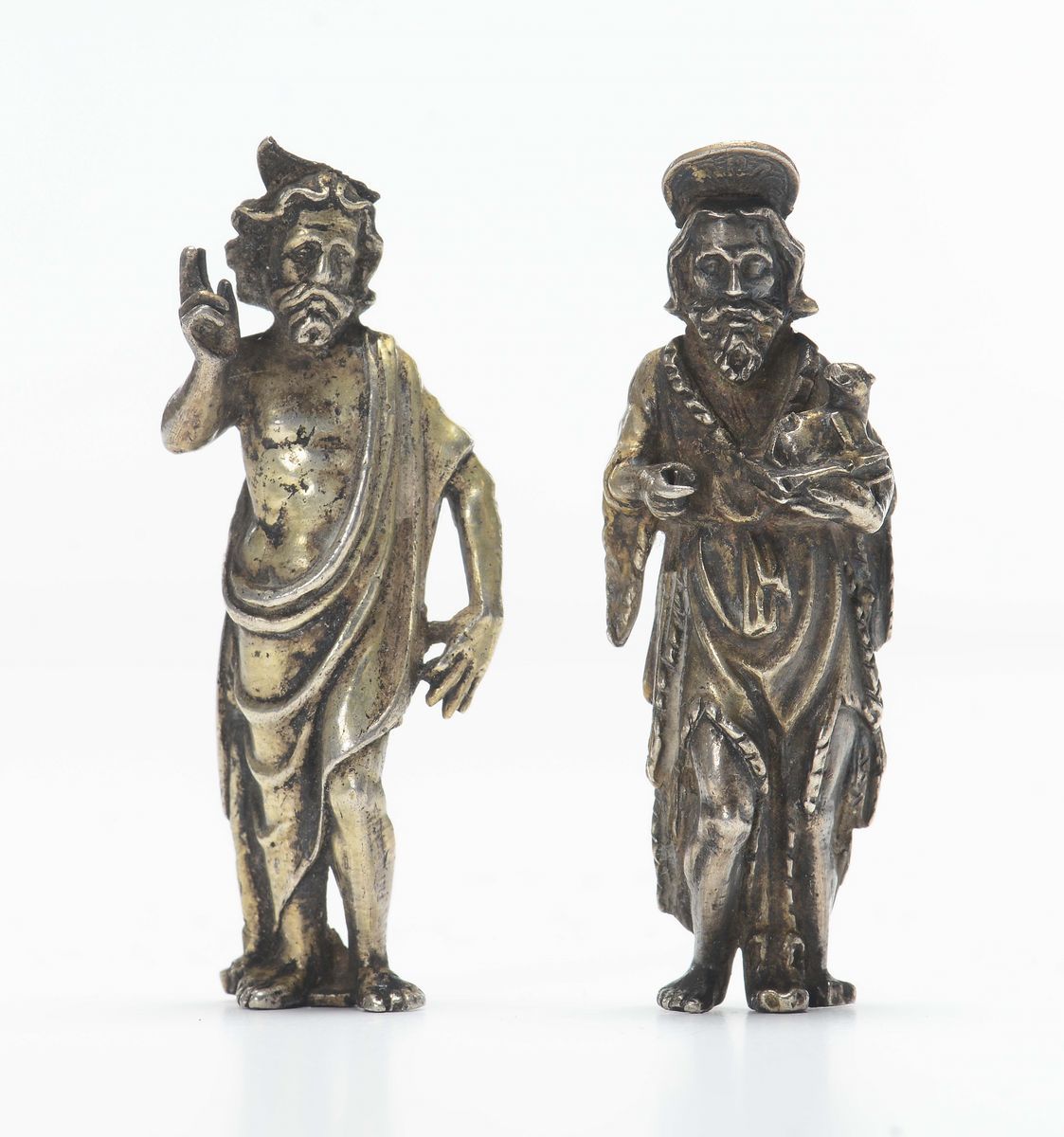 Due figure di Santi in argento, XIX secolo