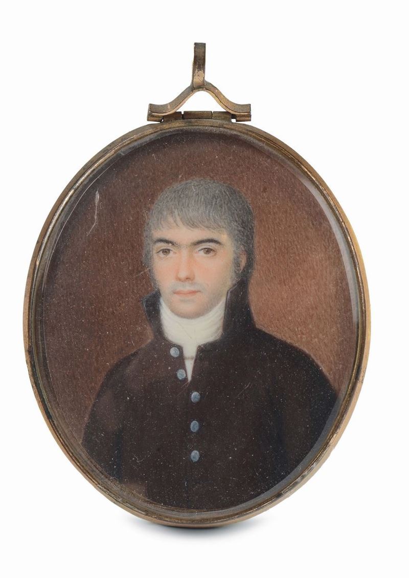 Due miniature ovali su avorio raffiguranti figure femminile e maschile, XIX secolo