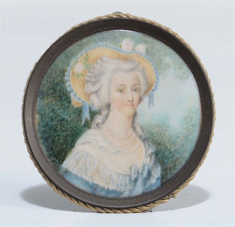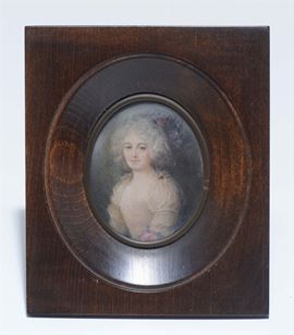 Due miniature su avorio raffiguranti figure femminili, una a firma Duval, XIX secolo