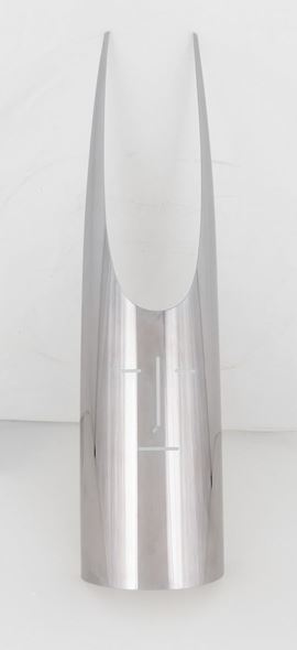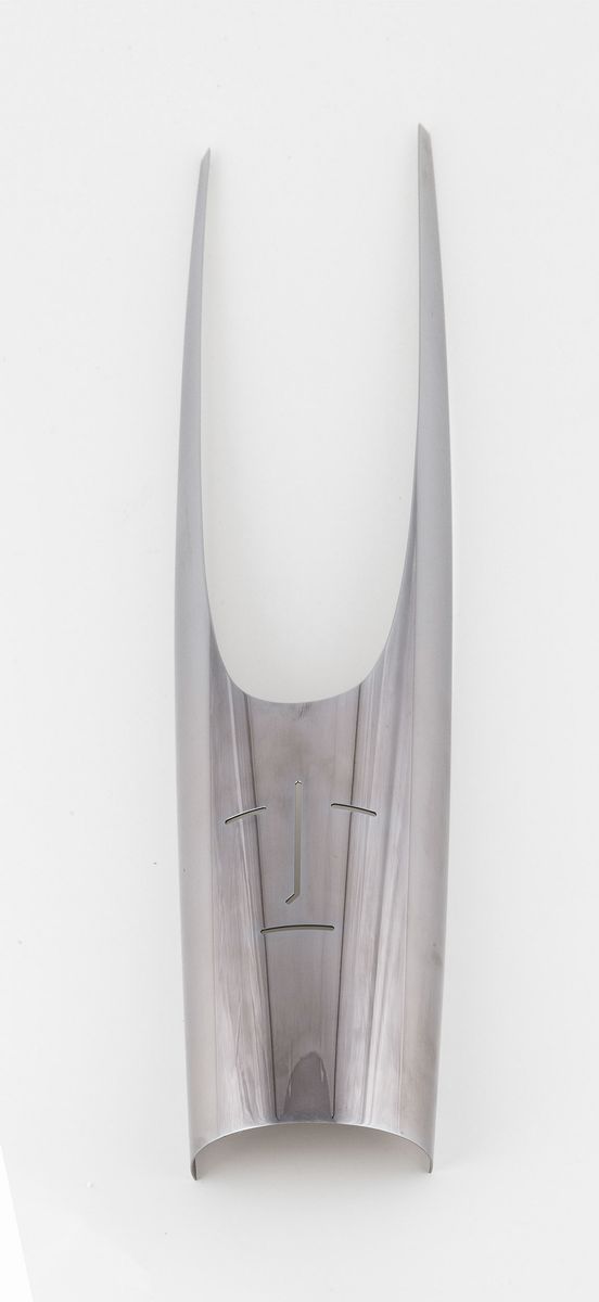 maschera cornuta scultura in lastra di metallo argentato cm 37