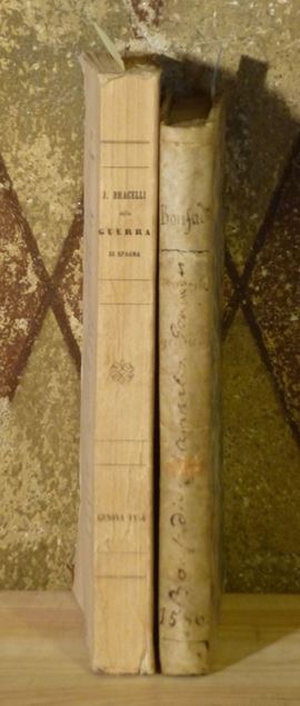 Papiae,Bartoli,1586. Legatura in mezza pergamena del sec.XIX. Si unisce nel lotto:Jacopo Bracelli-Della guerra di Spagna. Versione di F. Alizeri.Genova,Tip. Sordo Muti,1856.