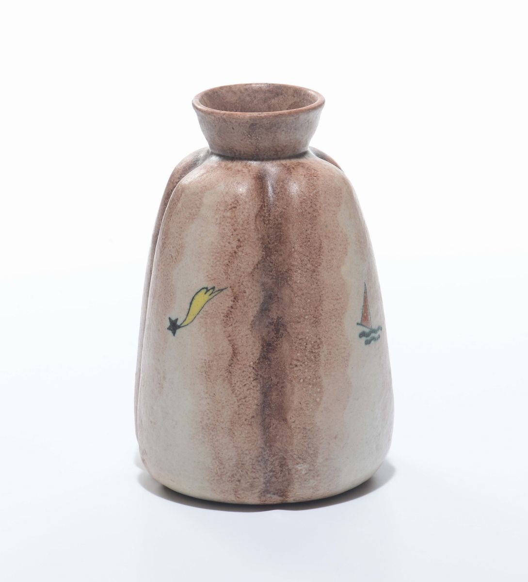 Vaso a sezione quadrilobata in terracotta maiolicata mat. Sotto simbolo grafico della manifattura. Altezza cm 20,5