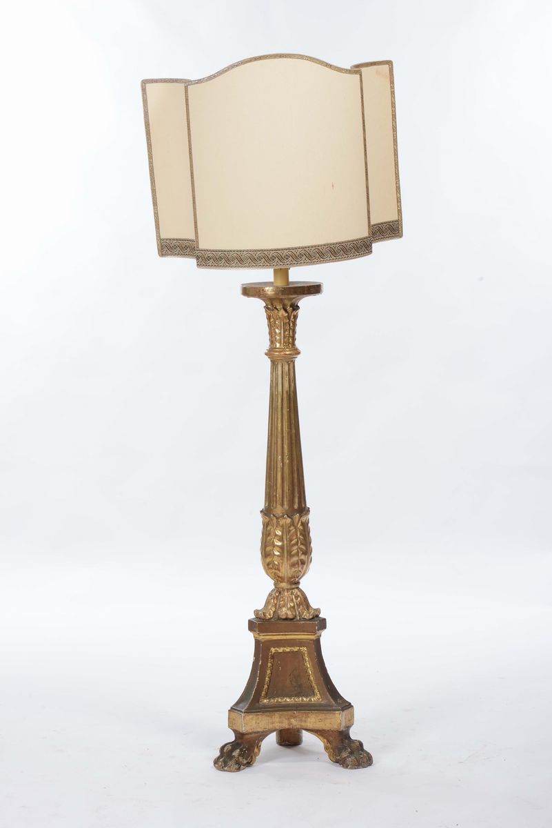 Lampada da terra in legno dorato, XIX secolo