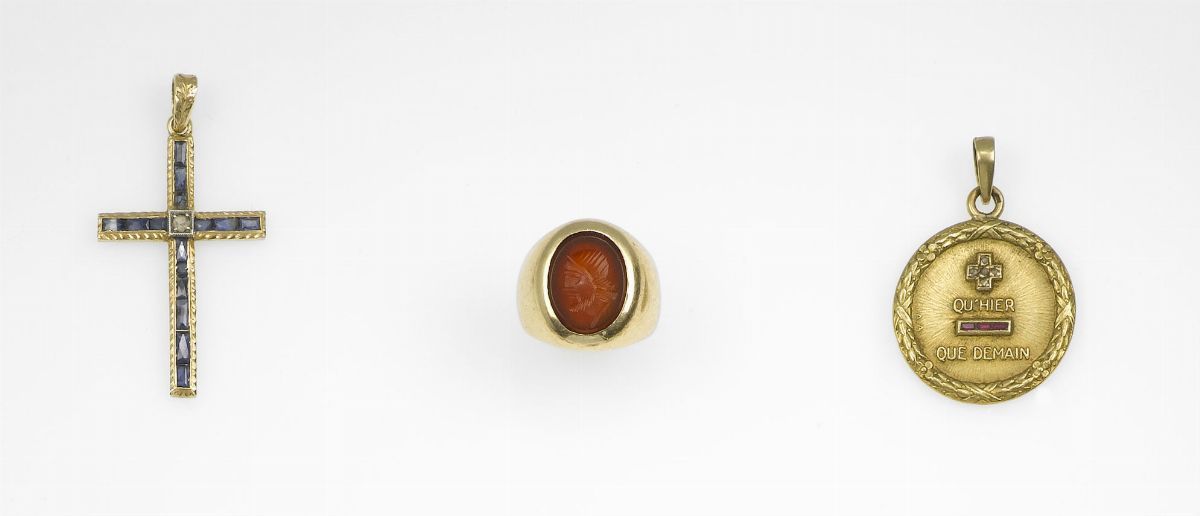 Lotto composto da un crocifisso, un anello ed una medaglia