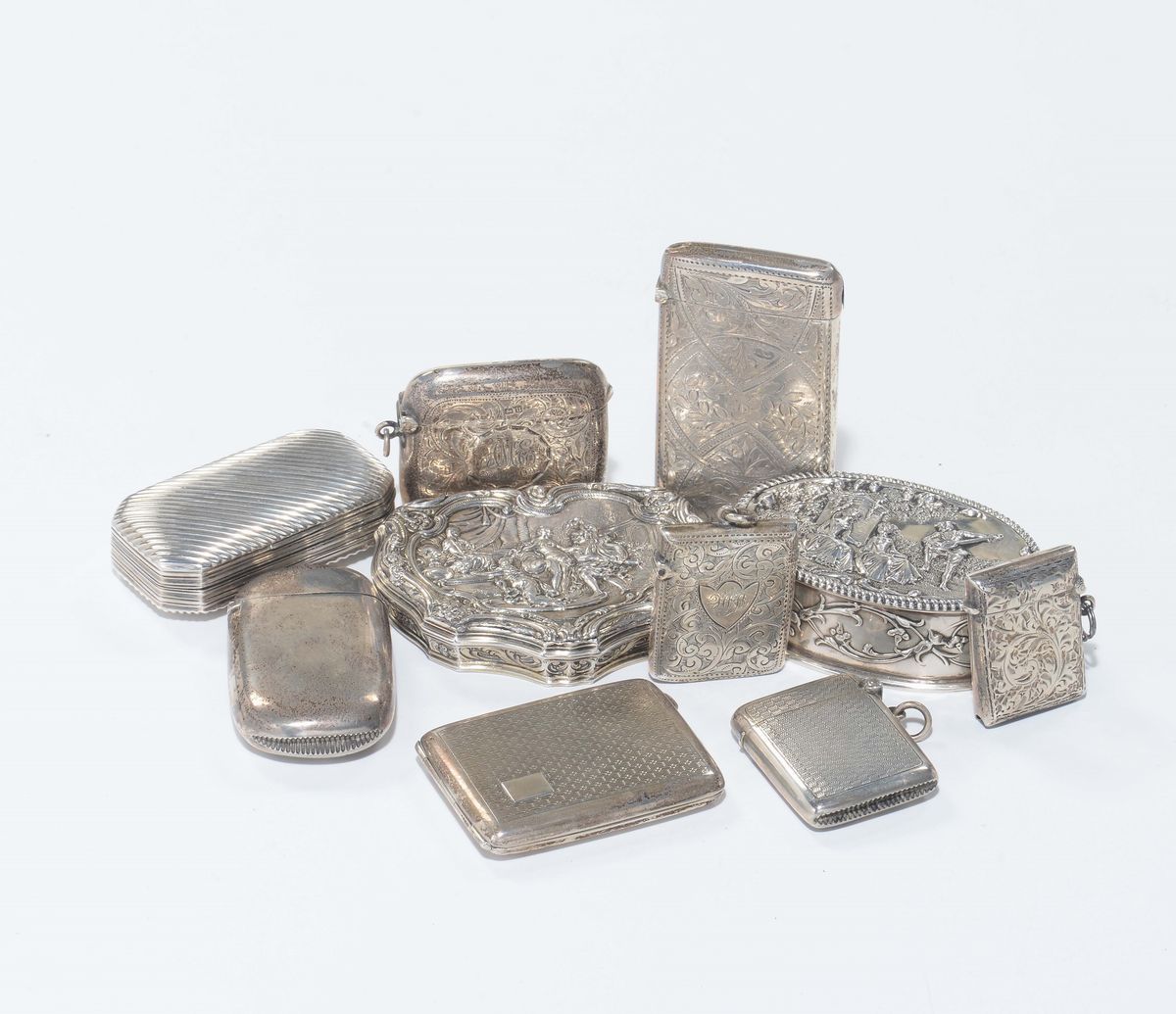 Lotto di dieci scatoline in argento, Inghilterra e Europa XIX-XX secolo