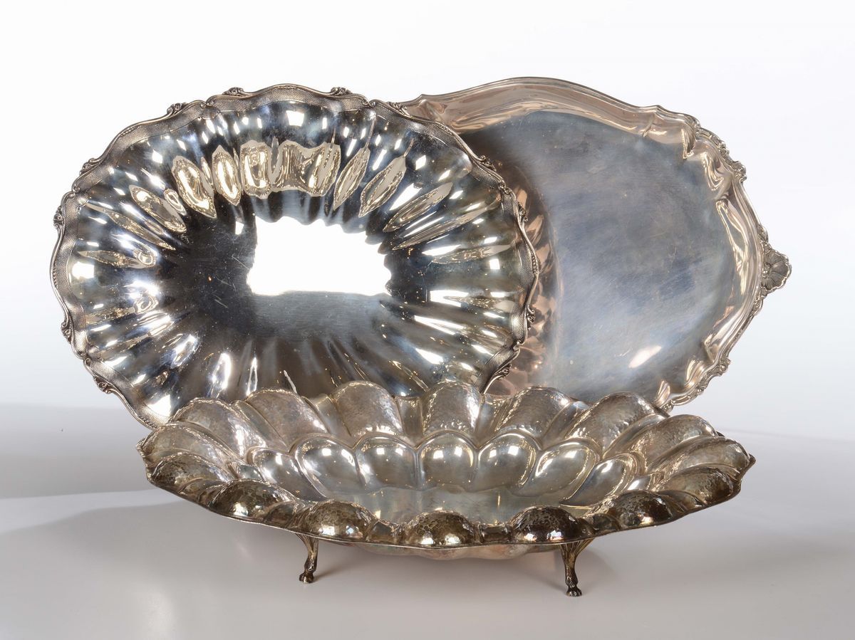 composto da vassoio e due centrotavola di cui uno con bordo sbalzato.Gr. 2500