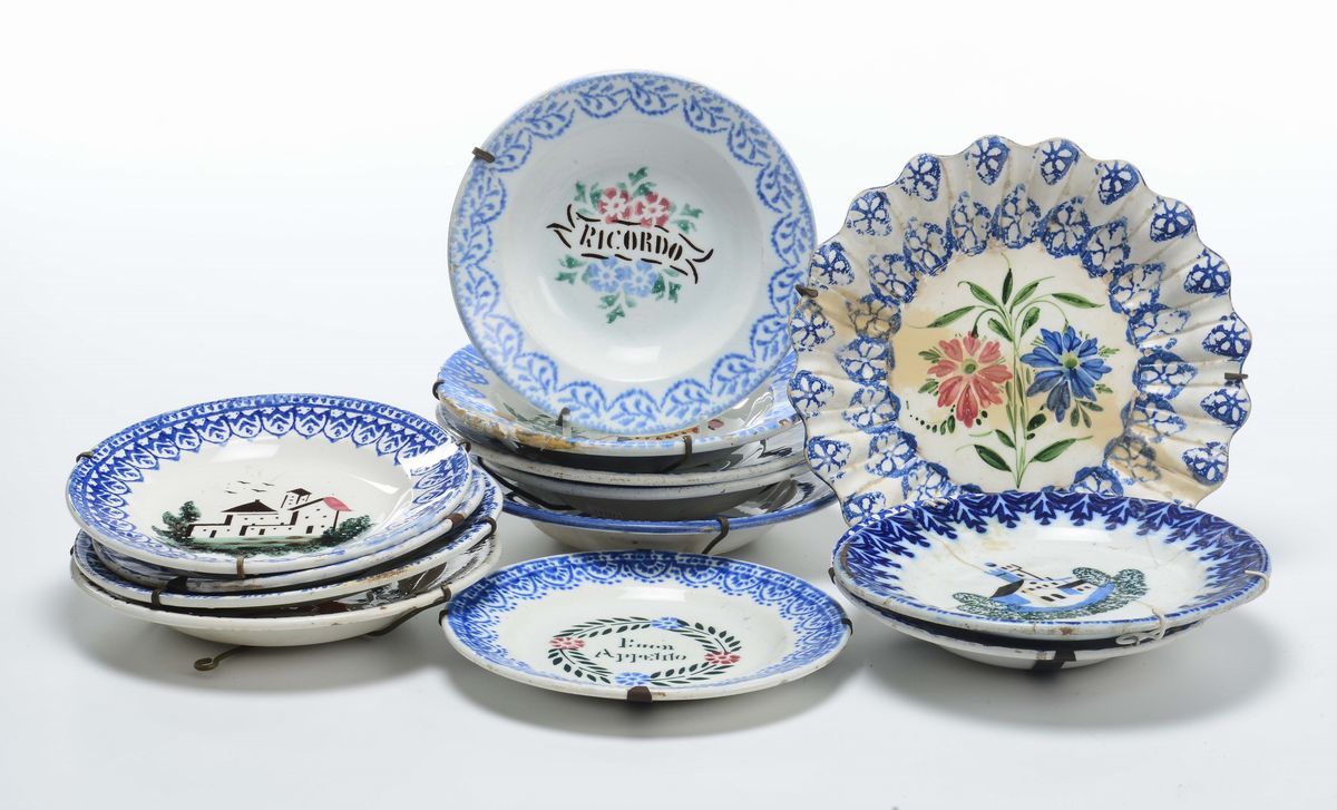 Lotto di tredici piatti popolari tipo vecchia Mondovì