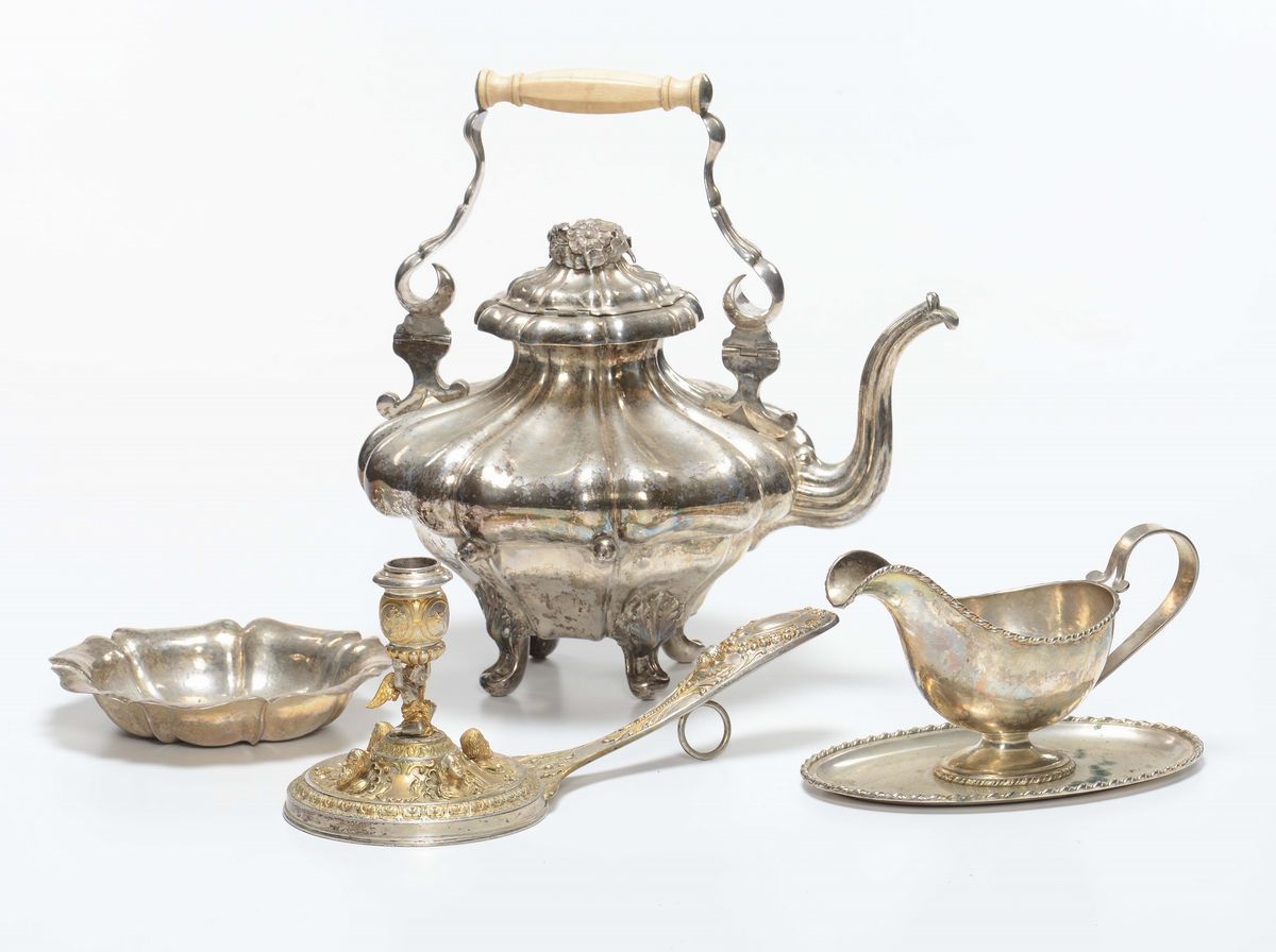 Lotto misto di oggetti in argento, XX secolo