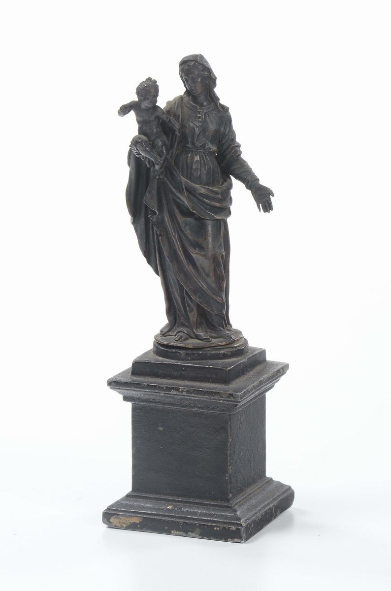 Madonna col Bambino in bronzo argentato, XIX secolo