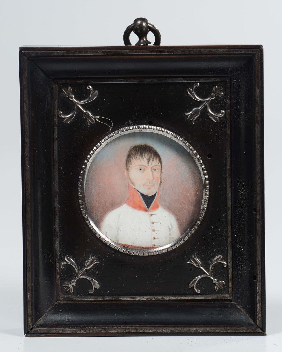 Miniatura su avorio raffigurante gentiluomo in uniforme bianca, XIX secolo