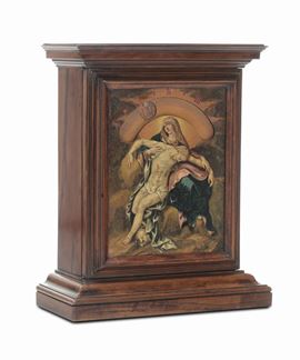quadrante in rame dipinto con Deposizione, cm 28x12,5x34,5