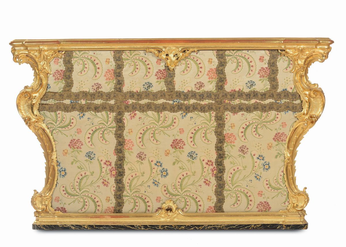 decori a volute e pellacce, cm 165x98, nel lotto anche coppia di cornicette da reliquiario dorate