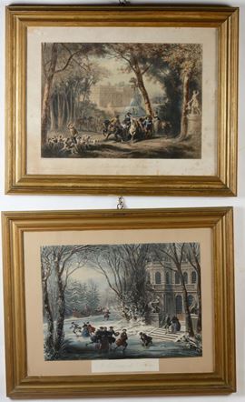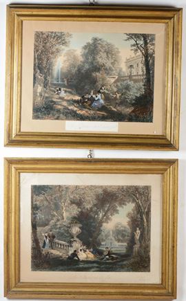 Quattro stampe colorate in cornice dorata, XIX secolo