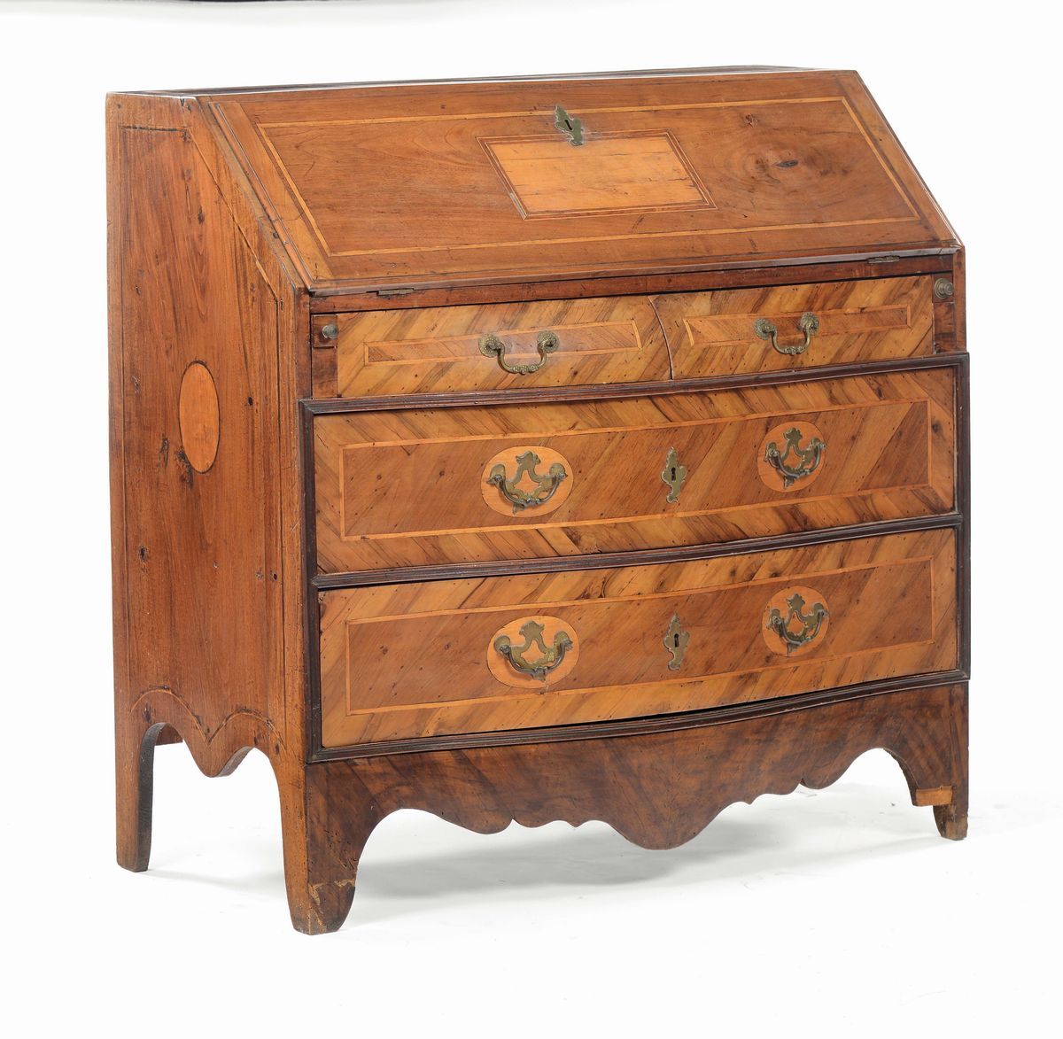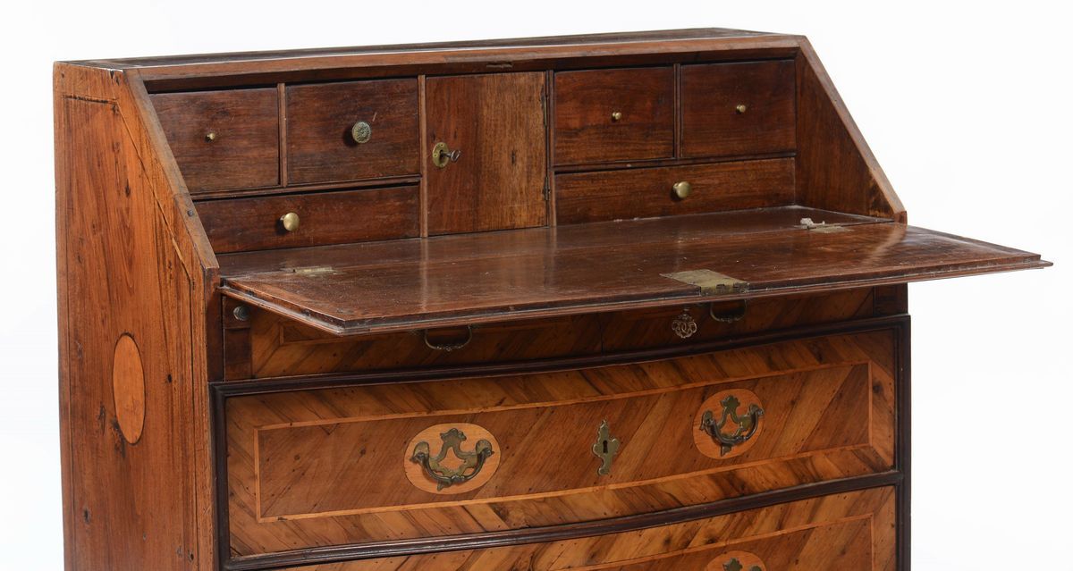 fronte mosso a tre cassetti, calatoia celante cassettini ed antina centrale, cm 108x50x105
