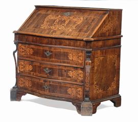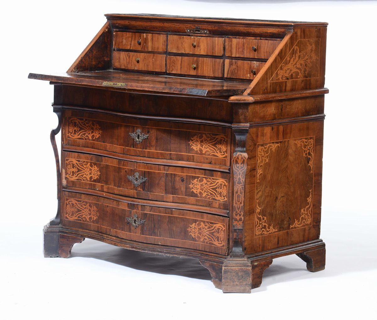 fronte mosso a tre cassetti, calatoia celante sei cassettini, lesene sui montanti, cm 120x63x110