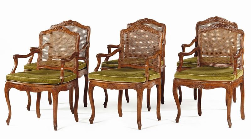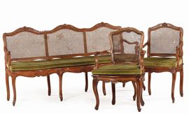 Salotto in legno intagliato e cannetè, XVIII secolo