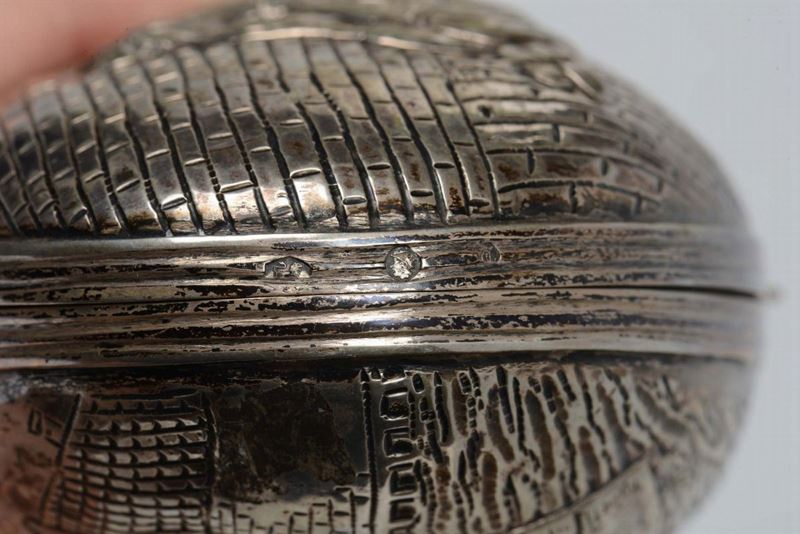 Scatola bivalva ovale in argento sbalzato, Inghilterra XIX-XX secolo
