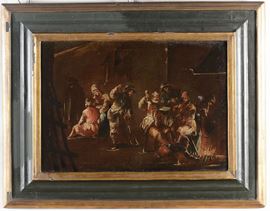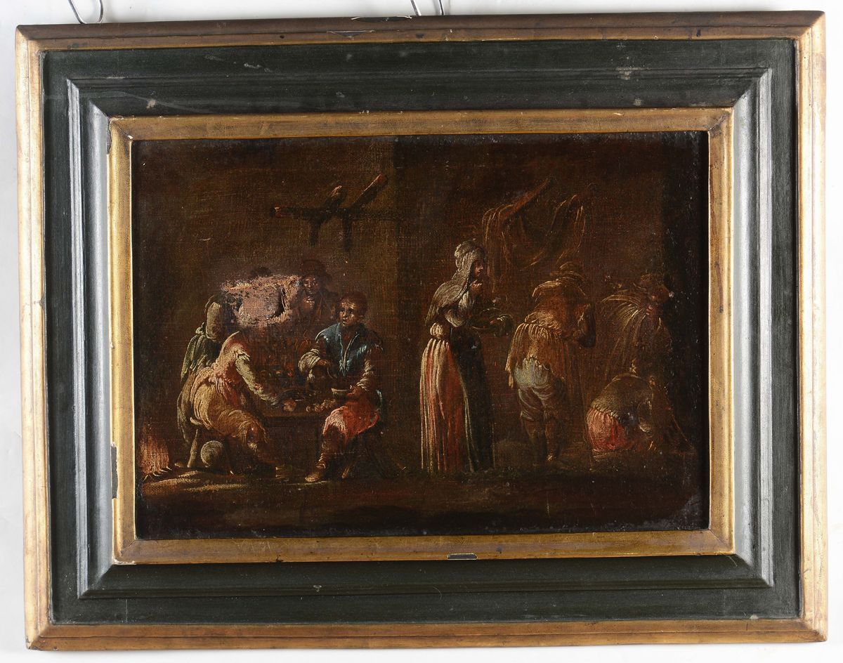 Scuola del XVIII secolo Coppia di scene di interni d'osteria