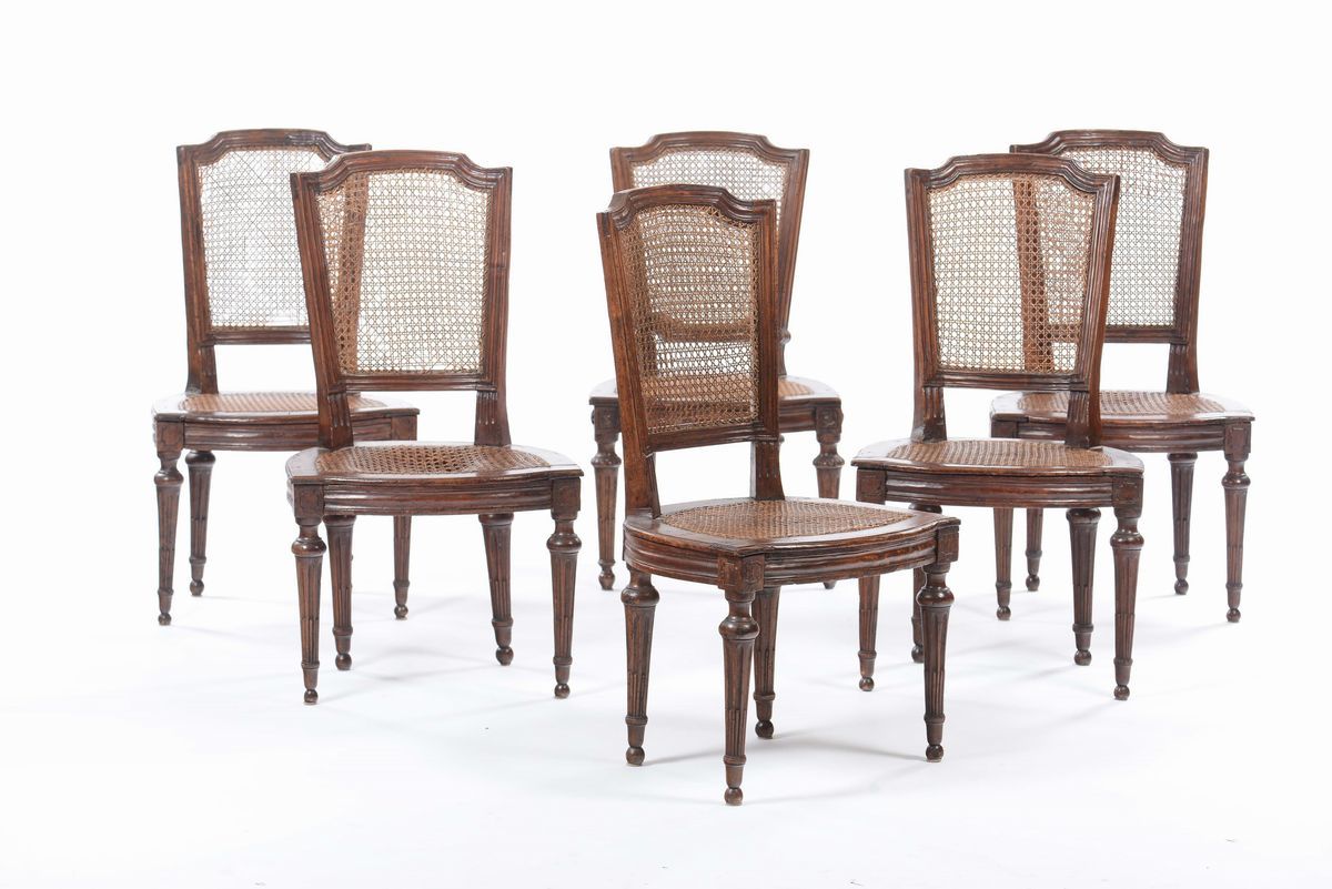 Sei sedie Luigi XVI in noce, fine XVIII secolo