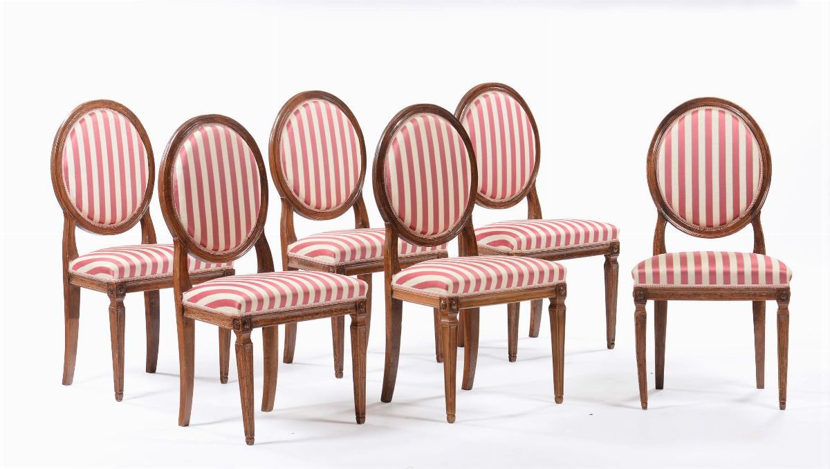 Sei sedie Luigi XVI in noce, XVIII secolo