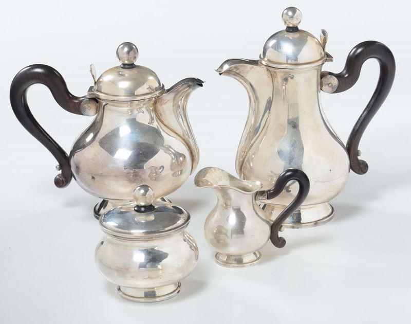 composto da caffettiera, teiera, lattiera e zuccheriera, gr. 1700 circa