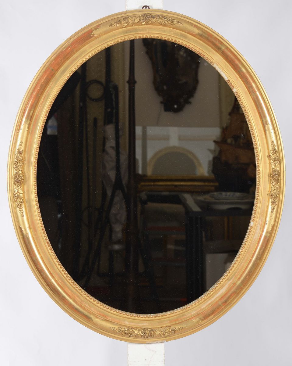 Specchiera ovale dorata, XX secolo
