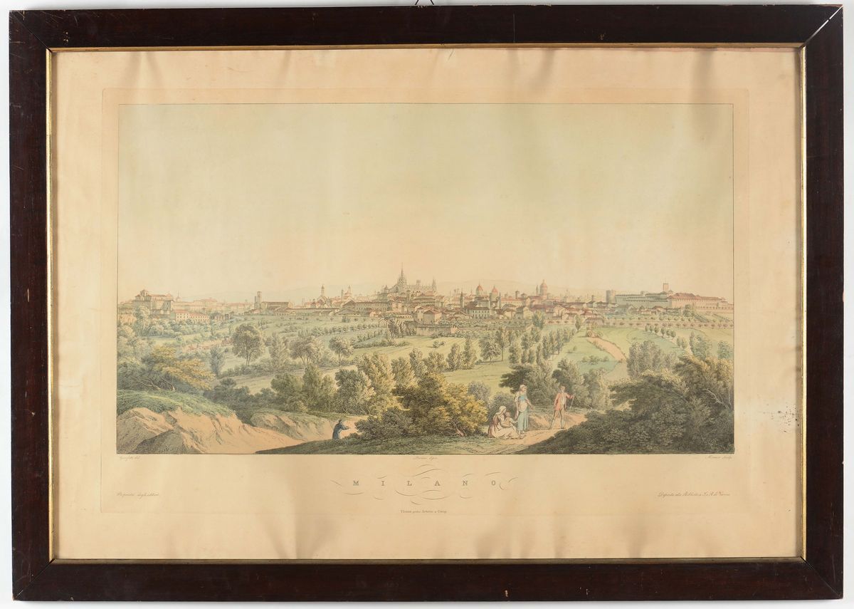 Stampa raffigurante veduta di Milano, XIX-XX secolo