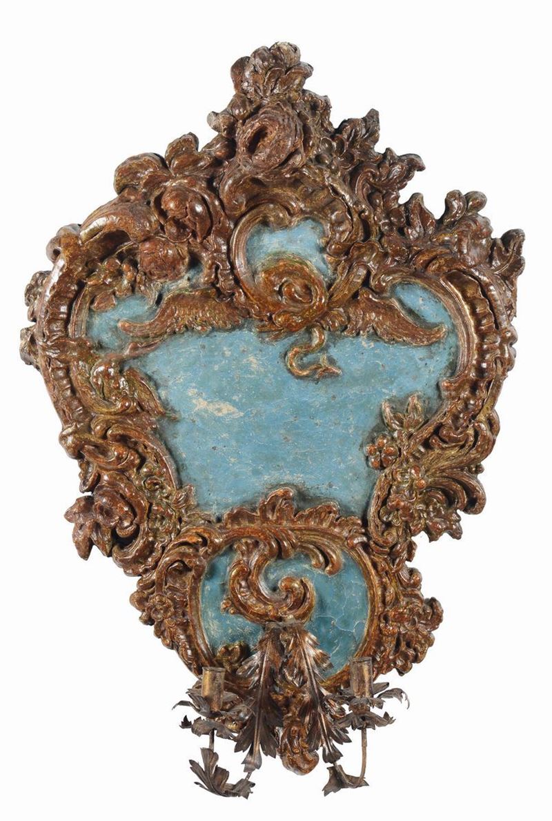 Tre ventoline in legno intagliato e laccato, XVIII secolo
