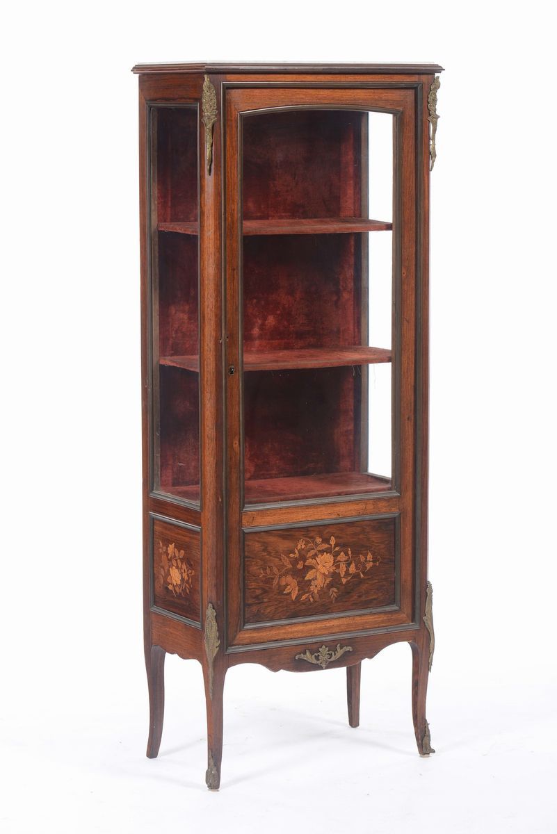 Vetrina in legno naturale ad un’anta con intarsi, XIX secolo