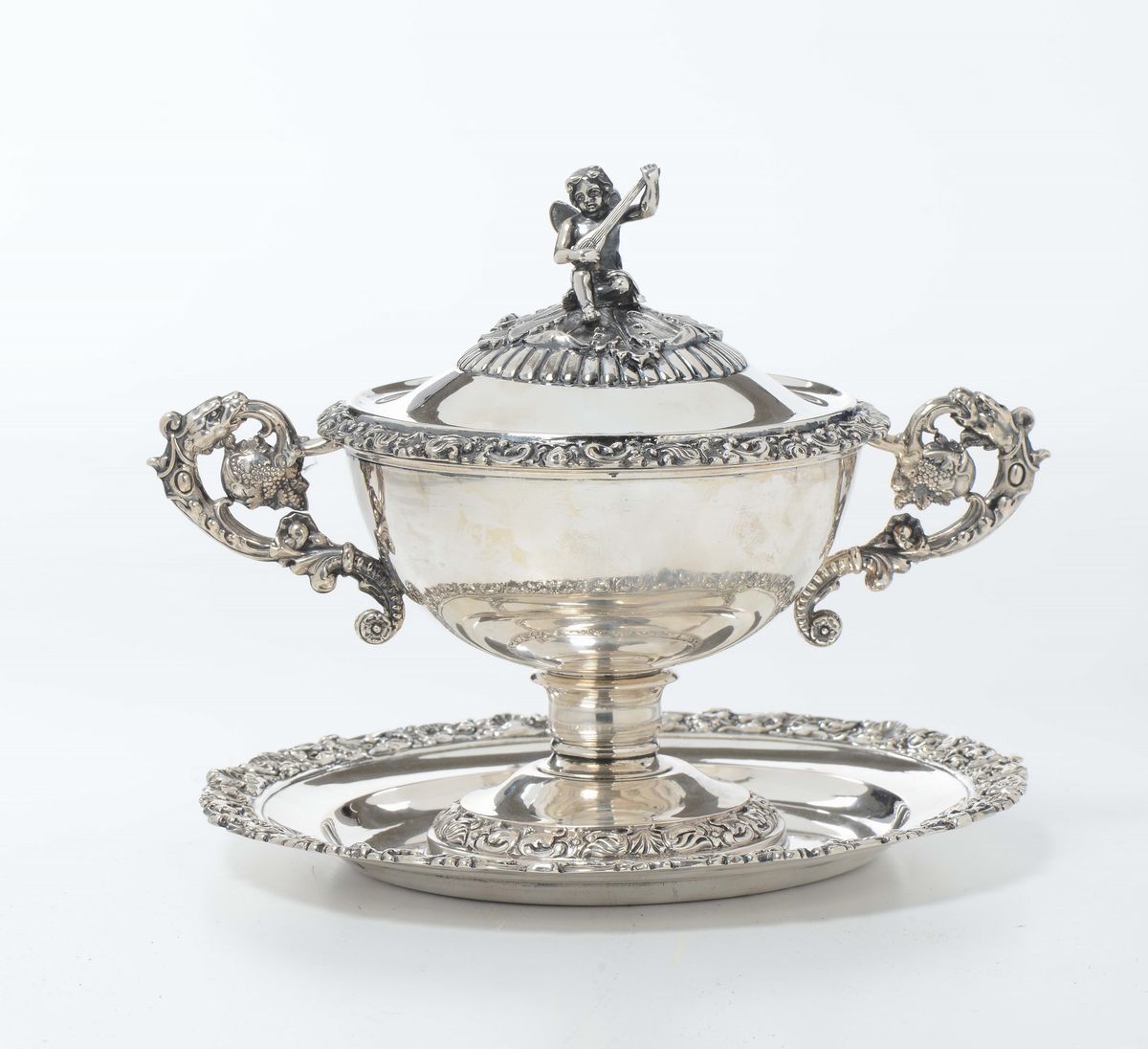 Zuccheriera con sotto piatto in argento, Milano XIX secolo