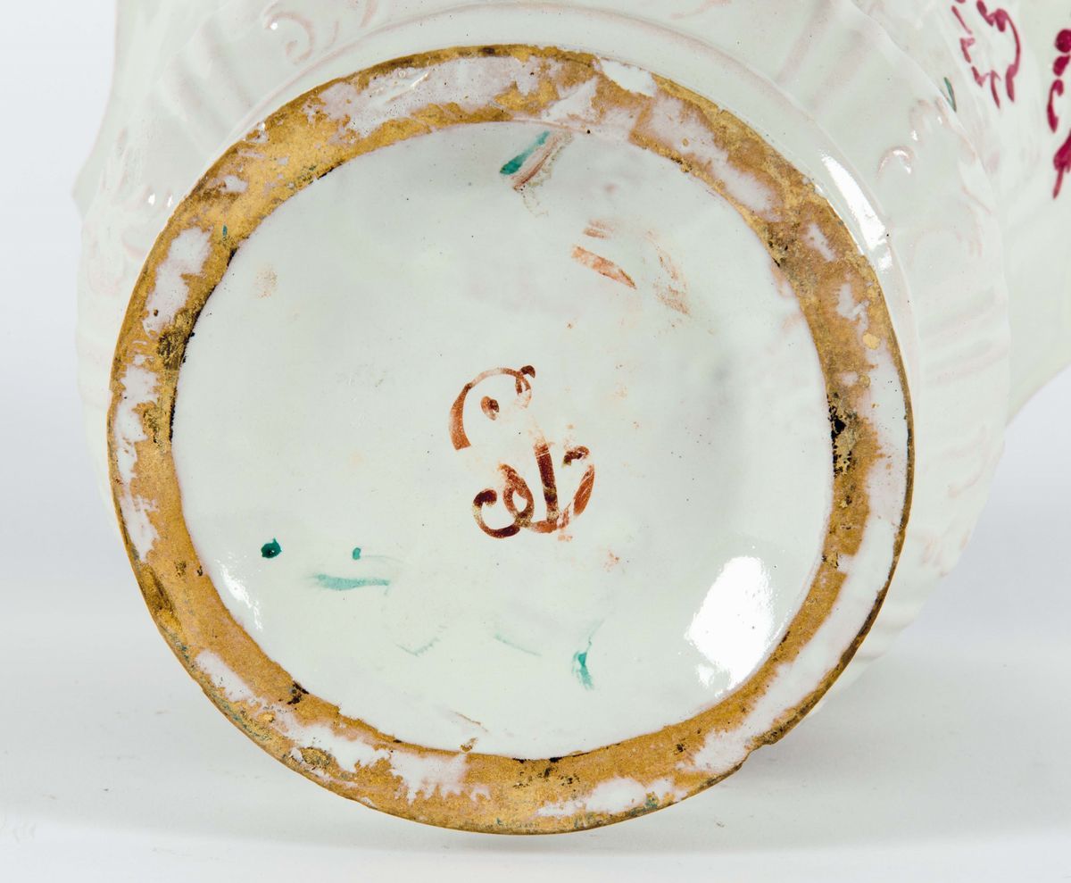 Maiolica a terzo fuoco in policromia, altezza cm 22,7Sbeccature alla base, alla bocca lievi mancanze.Felature visibili con lievi cadute di smaltoCorpo cilindrico, costolato, foglie di acanto stilizzate in rilievo, bocca estroflessa, con modanatura mistilinea.Decoro floreale “a mazzo di fiori” con la rosa e rametti di fiori sparsi dai toni squillanti del verde e rosso con tocchi di giallo. Alla base le due lettere P e S sovrapposte.