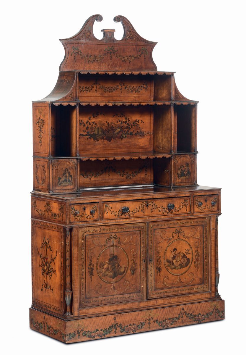 Credenza Edoardiana in satinwood modello Adam, Inghilterra XIX secolo