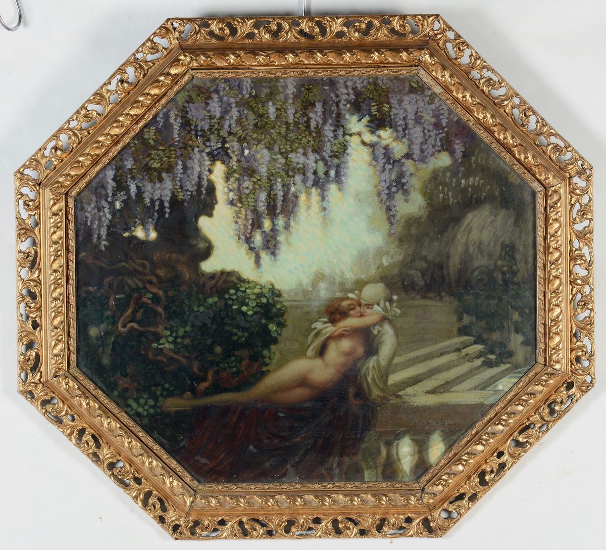 olio su tavola ottagonale, cm 53x58, firmato in basso a destra