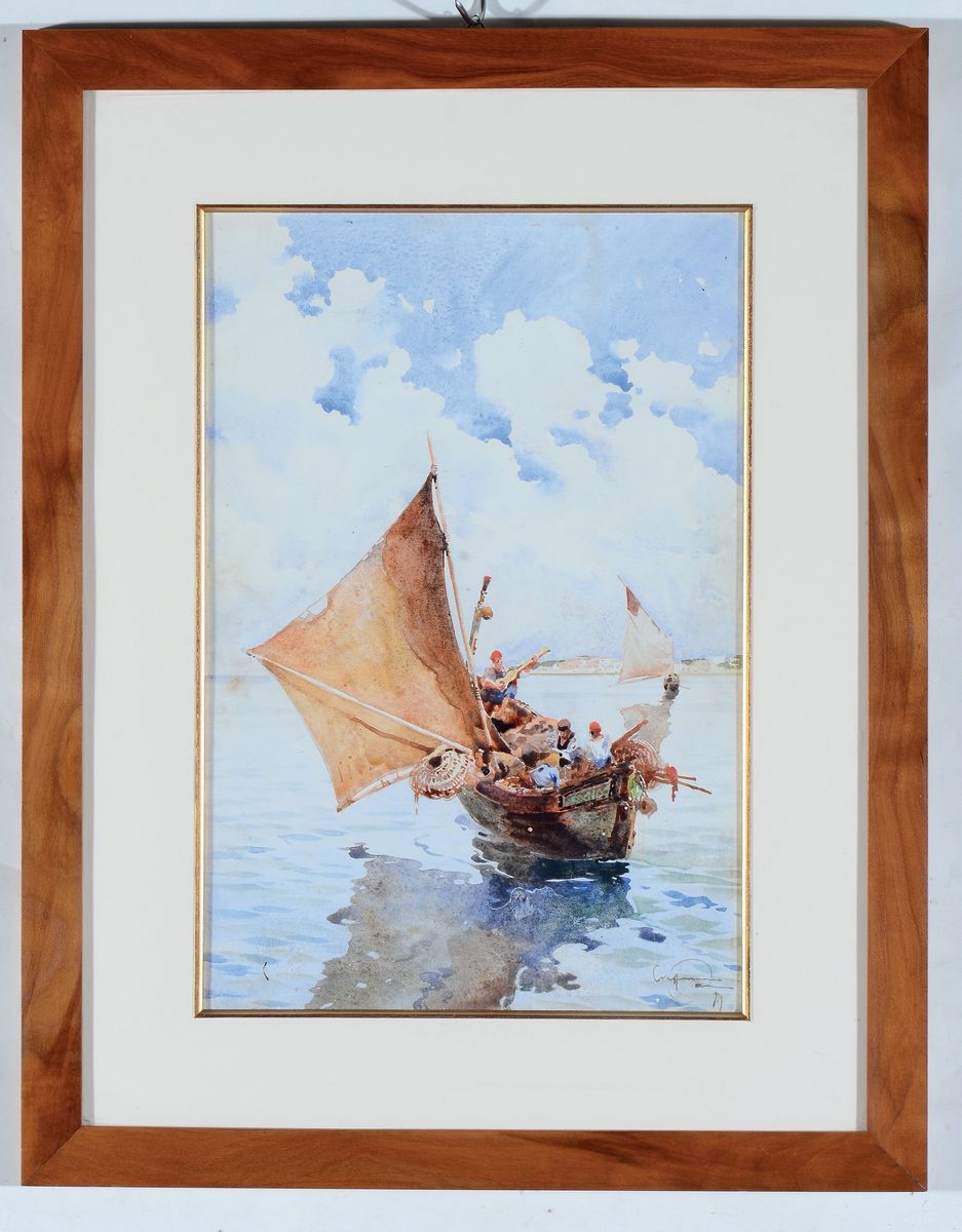 Aurelio Craffonara (1875-1945) Barca con pescatori, 1919
