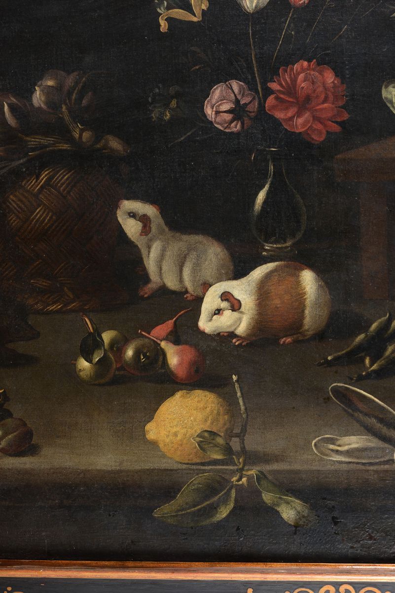Pittore Romano della prima metà del XVII secolo Natura morta con frutta, fiori e animali