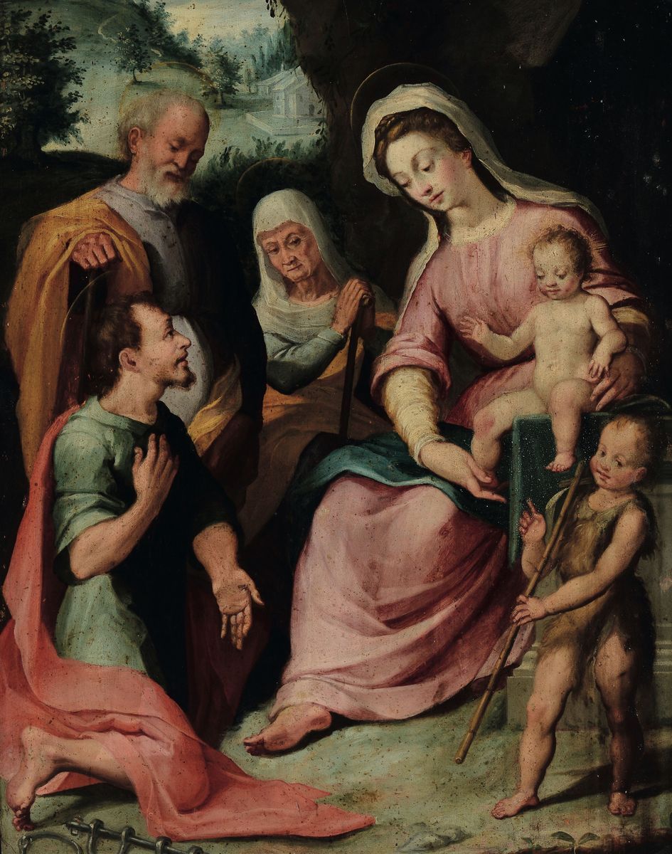 Santi Di Tito (Sansepolcro 1536 - Firenze 1603), cerchia di Sacra Famiglia con San Giovannino e Santi