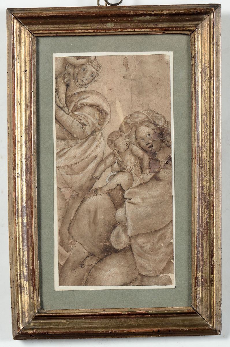 Lotto di quattro disegni tra cui uno studio di fregio con del lotto fa parte anche uno studio di affresco da Gaudenzio Ferrari (1475-1546), e due apostoli di Scuola lombarda Secolo XVI, nei modi di Perin del Vaga (1501-1547)