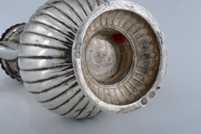 Caffettiera in argento fuso, sbalzato e cesellato, Repubblica Veneta XVIII secolo, punzone del leone di S.Marco e dell'argentiere [..]