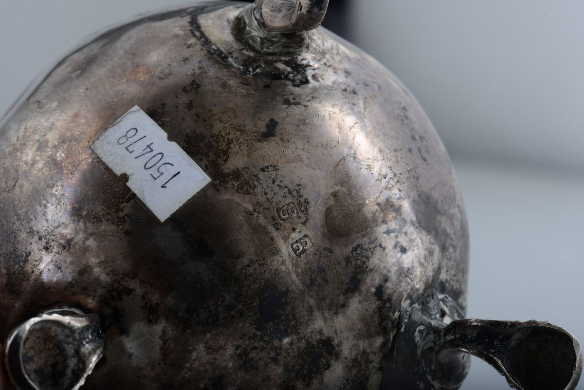 Caffettiera in argento fuso, sbalzato e cesellato, Repubblica Veneta ultimo quarto del XVIII secolo, punzone dell'argentiere CC