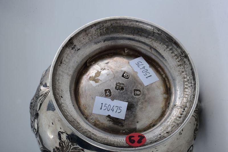 Caffettiera in argento sterling fuso, sbalzato e cesellato, Inghilterra XVIII secolo, città di Londra 1762, argentiere Wm. [..]