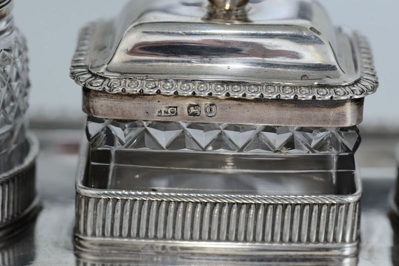 Calamaio in argento sterling e cristallo, Inghilterra XIX secolo, punzoni della città di Londra per l’anno 1829 e dell’argentiere [..]