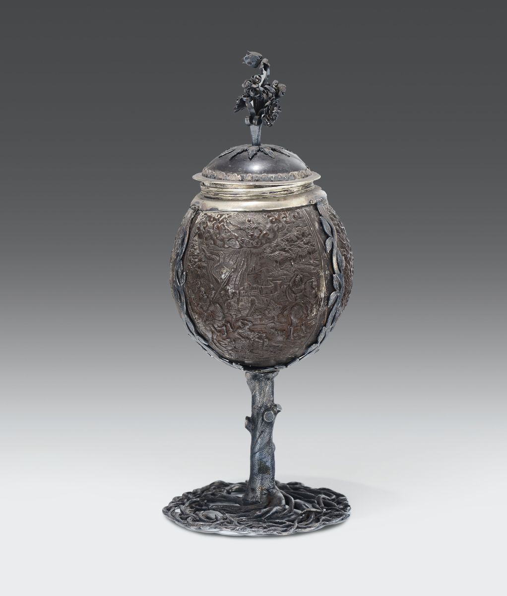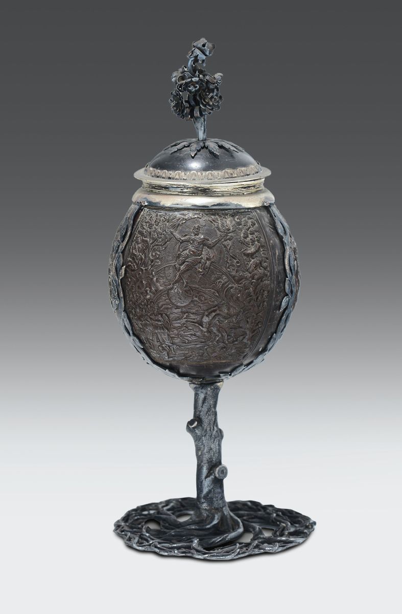 Calice con coperchio floreale, base a forma di albero