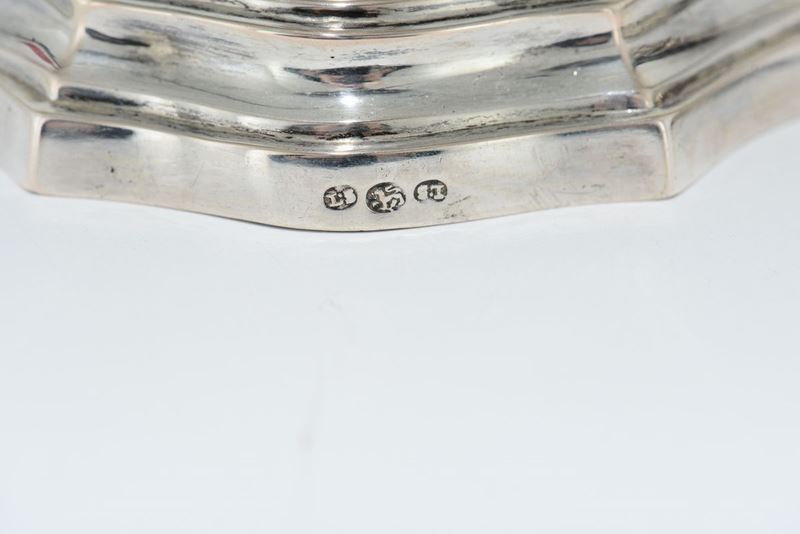 Coppia di candelieri in argento fuso e sbalzato,Firenze terzo quarto del XVIII secolo, argentiere Luigi Salvadori (1745-1 [..]