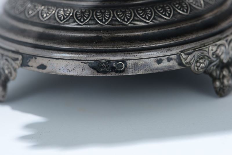 Coppia di porta stuzzicadenti in argento fuso e cesellato, punzoni mauriziani, Genova XIX secolo