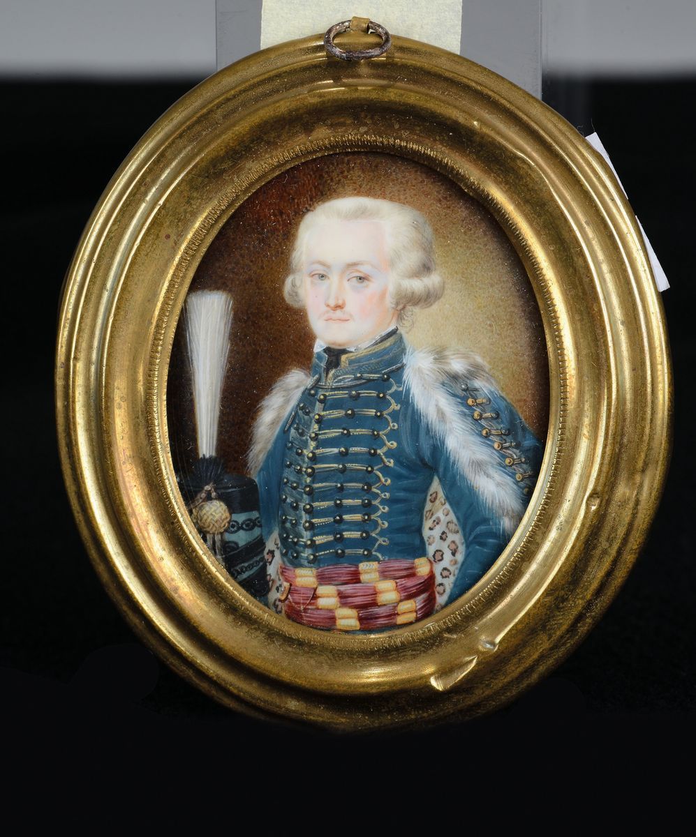 Il ritrattino, di notevole qualità, è riferibile, per evidenza stilistica, a Georg Desmarées o Des Marées, pittore ritrattista, nato a Stoccolma nel 1697, dove fu allievo di Martin Meytens, divenendone poi il collaboratore. Nel 1724 soggiornò ad Amsterdam, l’anno successivo a Norimberga, quindi a Venezia, dove frequentò l’atelier di Giovanni Battista Piazzetta. Nel 1731 si stabilì definitivamente a Monaco, dove visse fino alla morte, avvenuta nel 1776, divenendo pittore di corte di Massimiliano III Giuseppe Wittelsbach, elettore di Baviera. Vari ritratti, fra i quali il suo Autoritratto e quello della figlia, sono conservati a Monaco; altri ad Augusta. Come è noto, era prassi comune che i ritrattisti eseguissero anche effigi in piccolo, destinate ad essere portate con sé o inviate in dono ad altre corti; il raffinato ritrattino in oggetto, databile al 1770 circa, ha, infatti, il respiro del grande formato, pur in dimensioni assai ridotte.