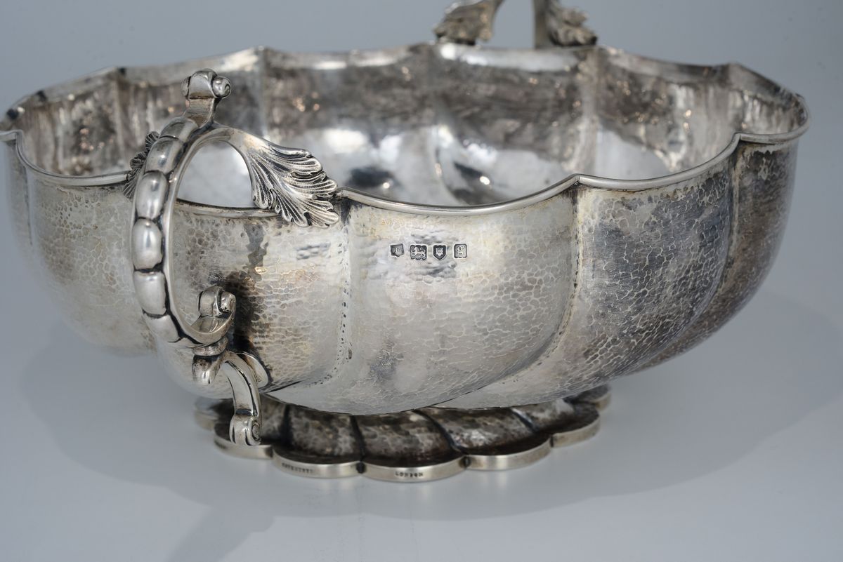 Grande coppa da punch in argento fuso sbalzato e cesellato, Inghilterra XX secolo, punzoni città di Londra 1902 e dell’Argentiere H e L, iscrizione incisa sulla base Lambert Coventrys London