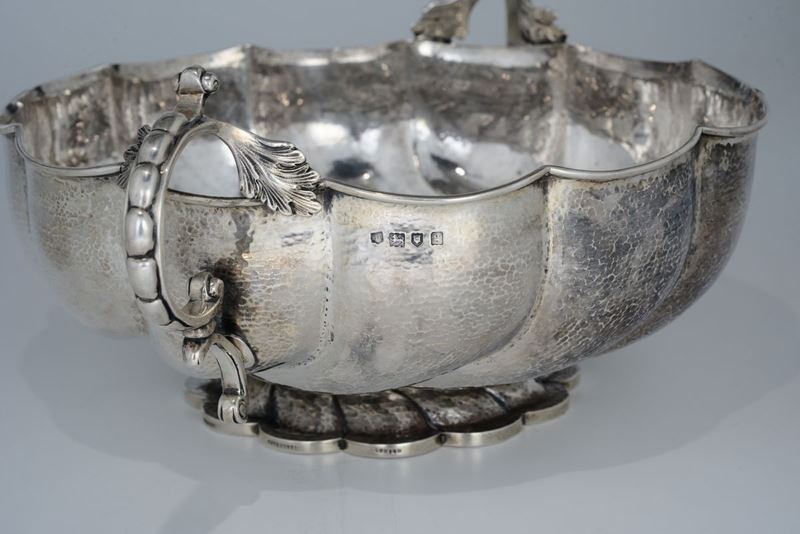 Grande coppa da punch in argento fuso sbalzato e cesellato, Inghilterra XX secolo, punzoni città di Londra 1902 e dell’Argentiere [..]