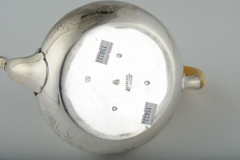 Teiera in argento sterling sbalzato, cesellato ed avorio, Inghilterra XIX Secolo, bolli della città di Londra 1830, argentiere Robert Garrard