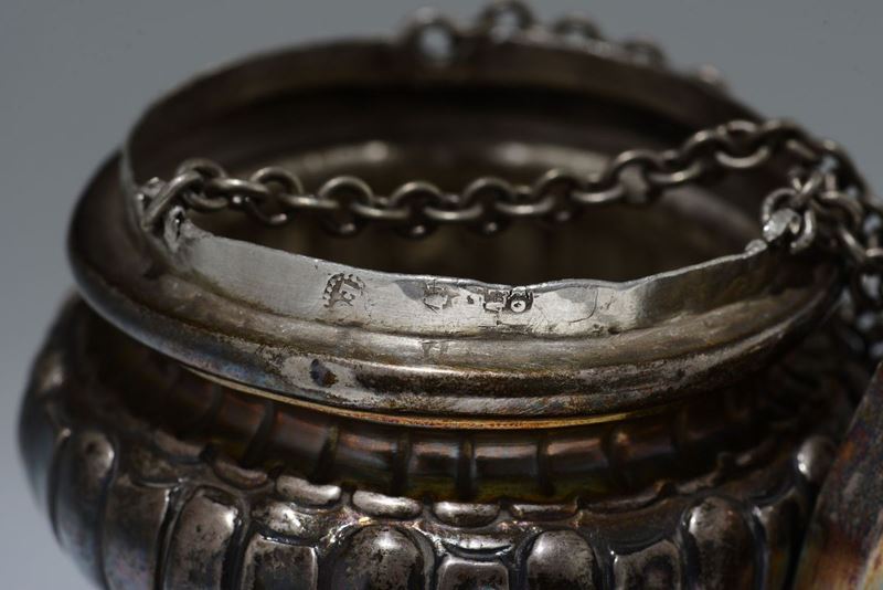 Turibolo in argento fuso sbalzato e cesellato, Napoli XVIII secolo